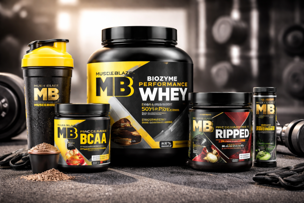 MuscleBlaze is a popular sports nutrition brand known especially in India. It provides protein powders, amino acids, and fitness supplements for gym training and bodybuilding.