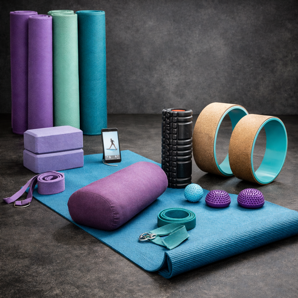 The goal of yoga and flexibility gear is to help people relax, get more balanced, and be more flexible. A lot of people use yoga mats, foam rollers, yoga blocks, and stretching bands for their yoga classes, stretching routines, and recovery workouts.