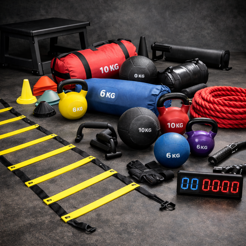 Strength training gear is made to help you get stronger and build muscle. Dumbbells, barbells, kettlebells, and resistance bands are all common pieces of equipment. People do a lot of activities like weightlifting and body conditioning with these tools, both in gyms and at home.